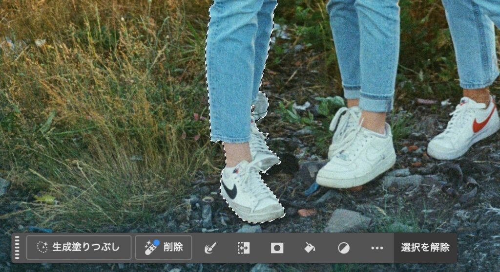 - この画像の左の人だけを消す->オブジェクト選択ツール