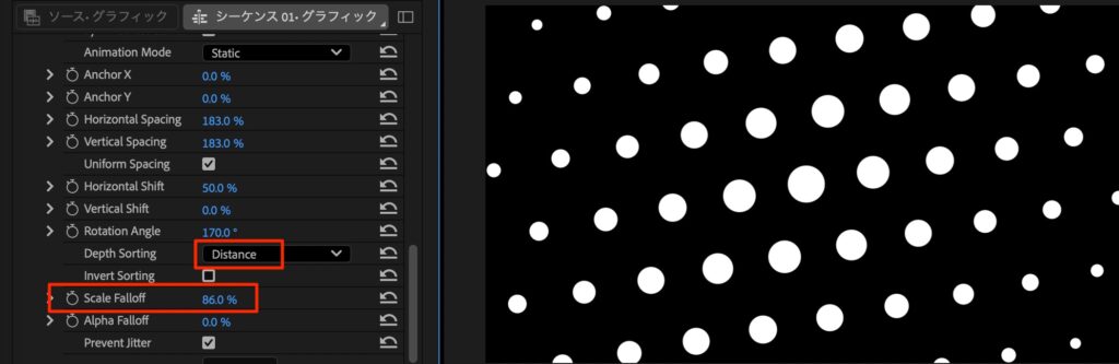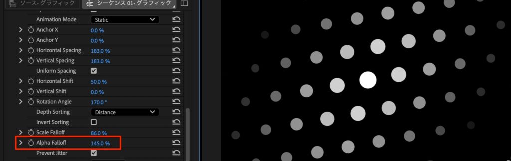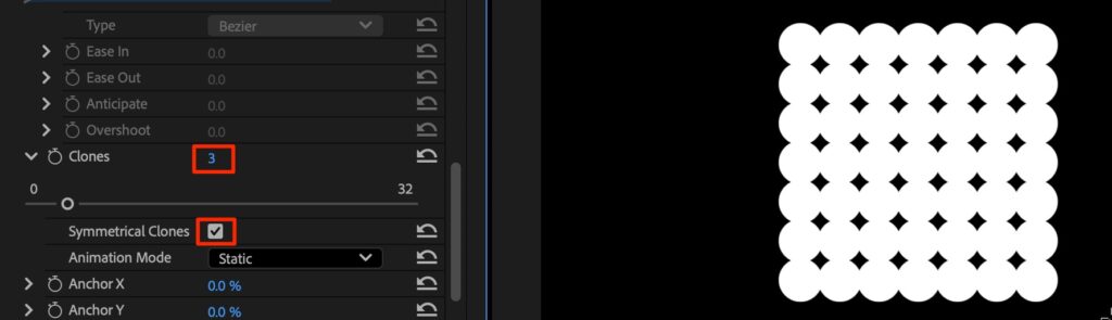 • Cymmetricalにチェックが入っていると上下左右に同じ数複製する