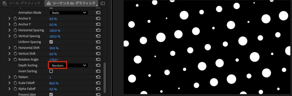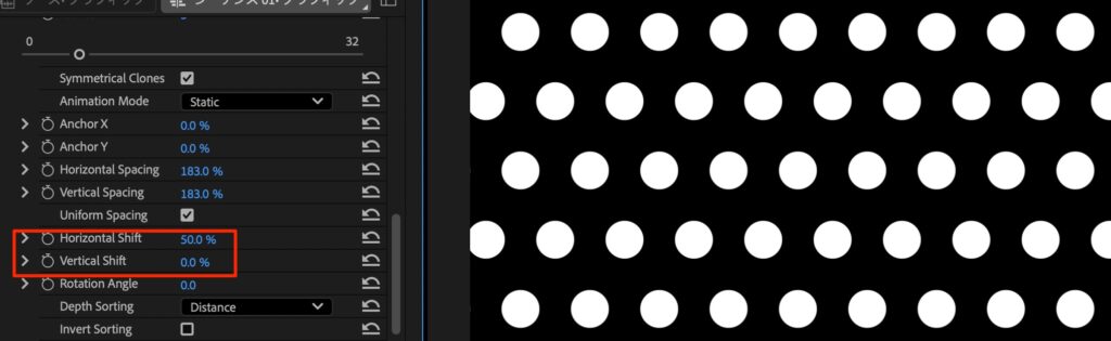 • 下ではHorizontal(水平方向)に50%ずらしている