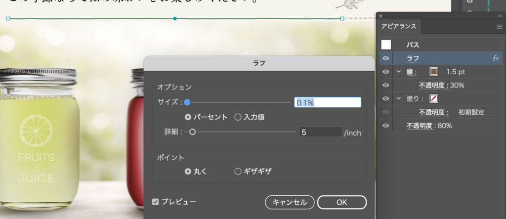 - 線に効果 > パスの変形 > ラフ