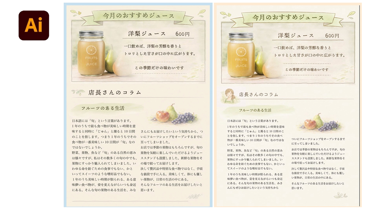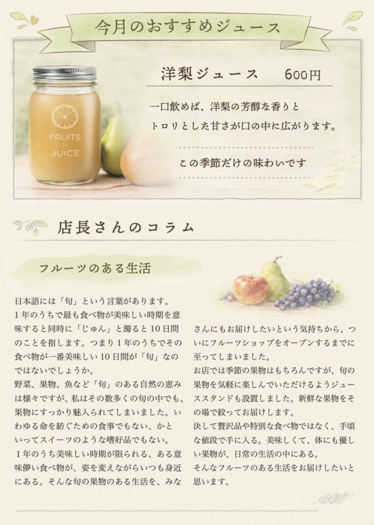 - 店長さんに登場してもらってぐっと魅力がました。明日また印刷してみよう!