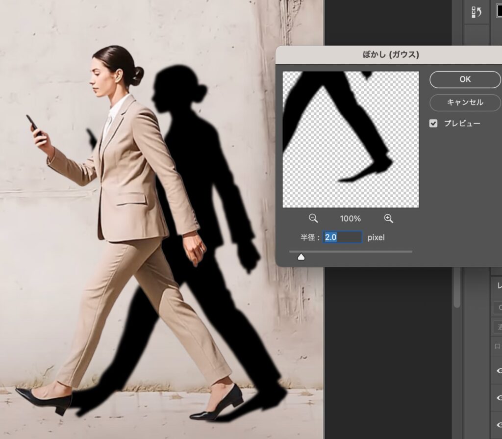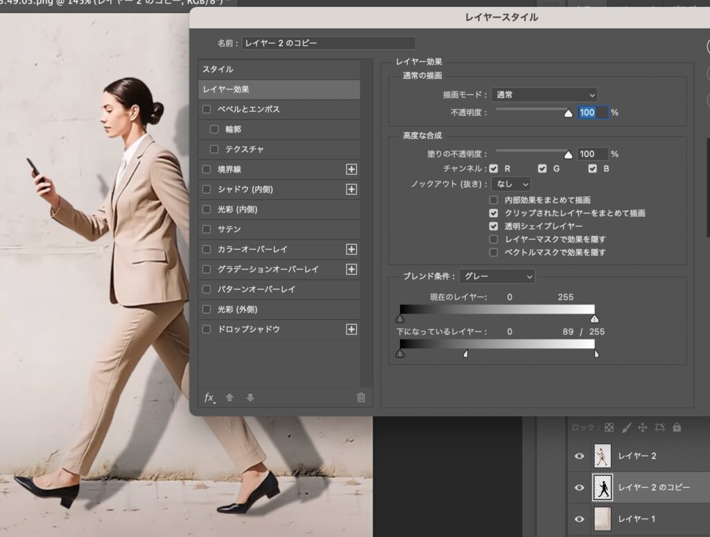 - 人物レイヤーを複製し、黒で塗りつぶす