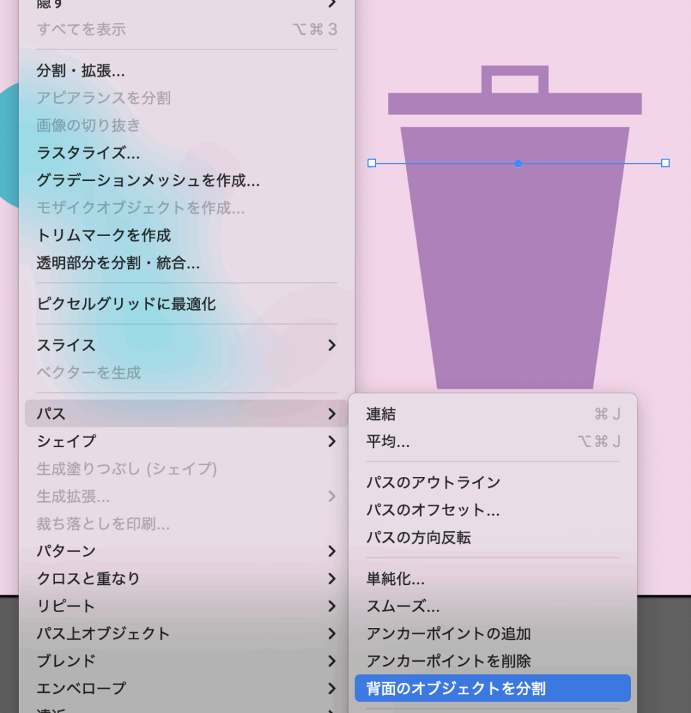- オブジェクト -> パス ->背面のオブジェクトを分割