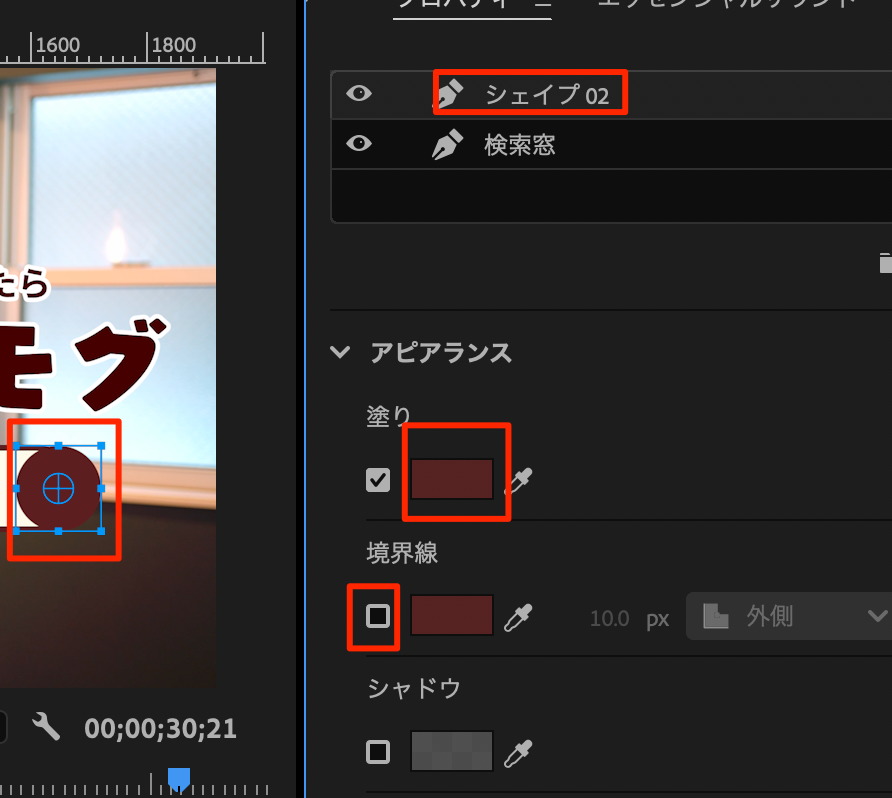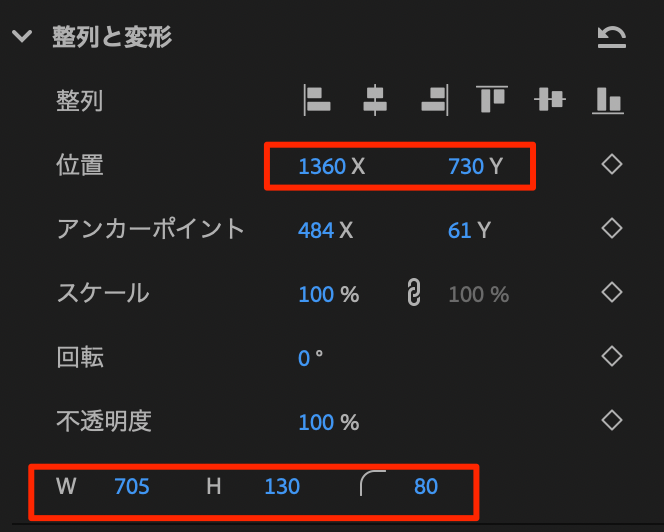 - エフェクトの右端を掴んで12:21のところまで短縮する