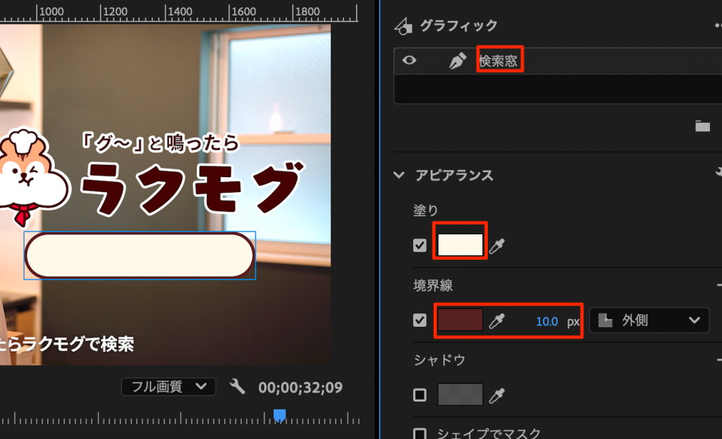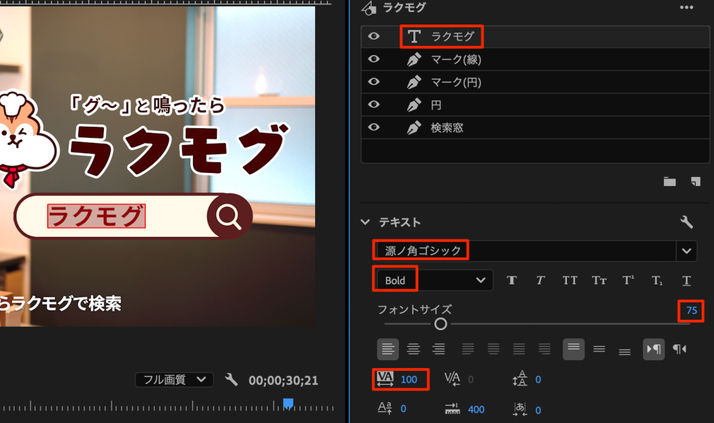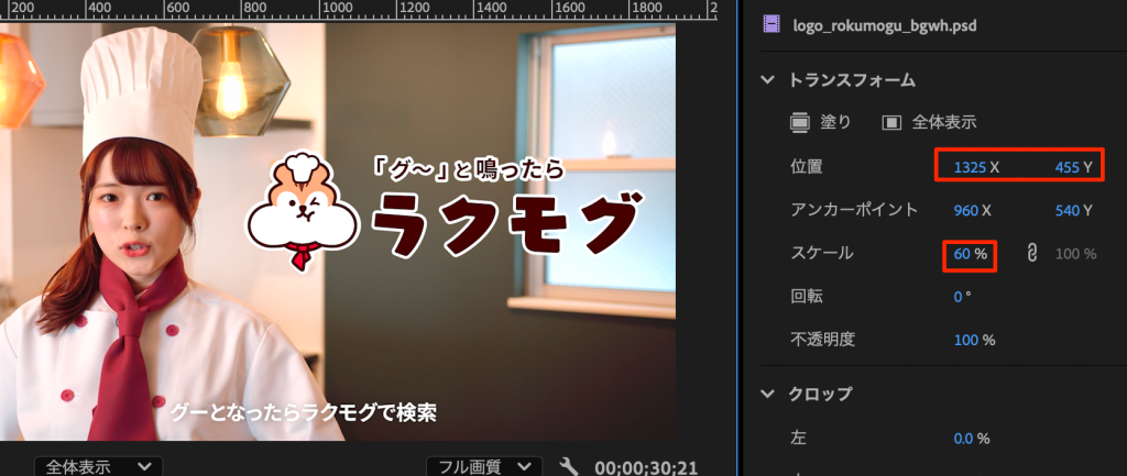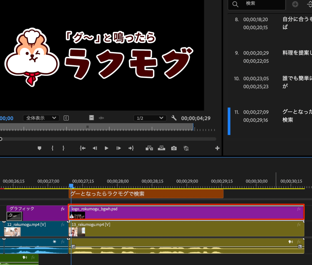 - logo_rakumogu_bgwh.psdの左端を掴んで12:14まで短縮する