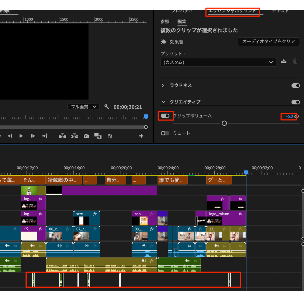 - すべてのSEを選択してボリュームを-6.0に設定する