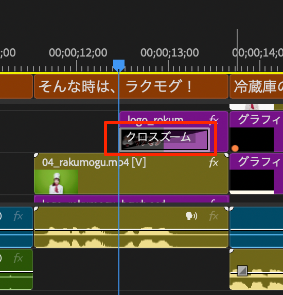 - AEだったらキーフレームを打つところだがPRだとクロスズームエフェクトで行う。