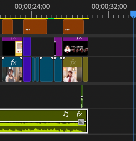 - 再生ヘッドを29:10に合わせてもう一度クリップを短縮する