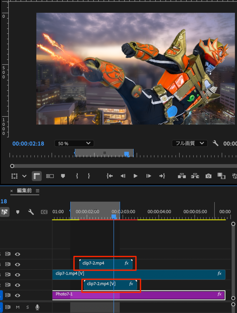 - 黒背景のエフェクト動画を配置する