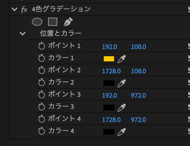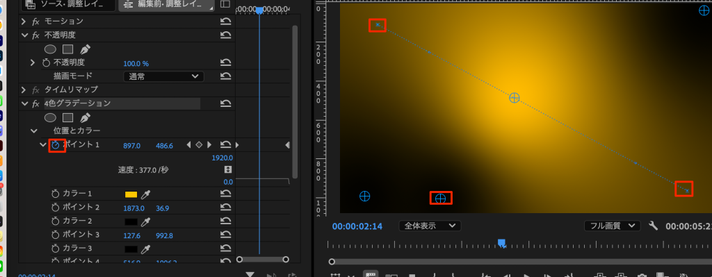 - キーフレームを打って左上から右下に移動させる