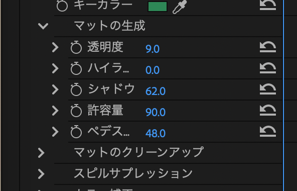 - ultraキーエフェクトを適用し、キーカラーを選択する