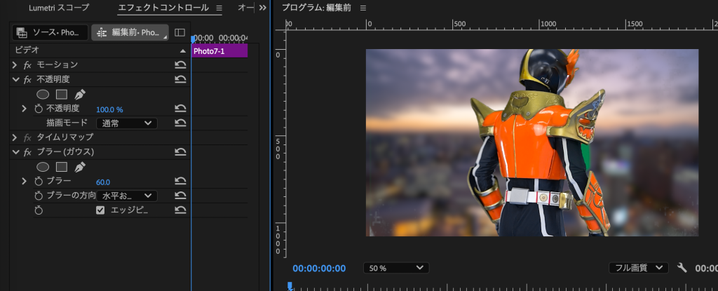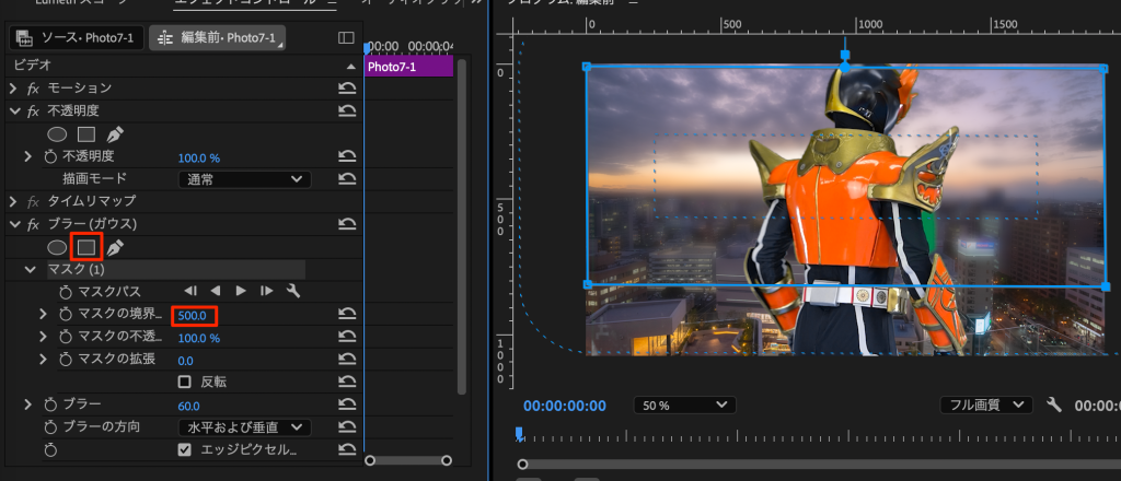 - 範囲を設定し、境界をぼかす