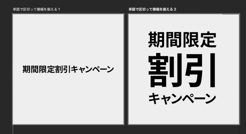 - 単語を区切って横幅を揃える