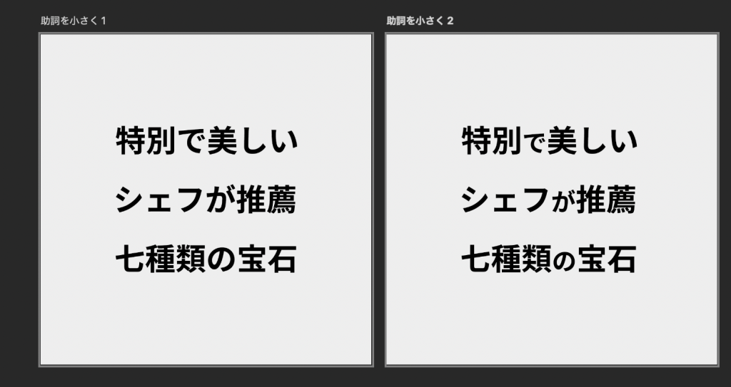 - 助詞も小さく