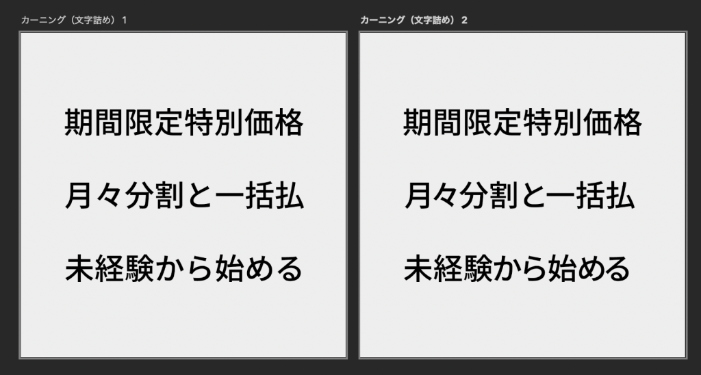 - カーニングは文字間を縮める