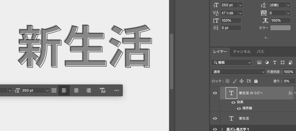 - 塗りが薄いときは版ズレ風文字も効果的