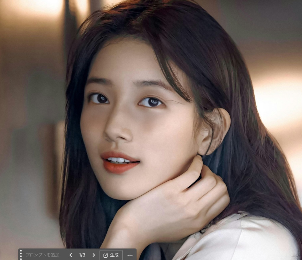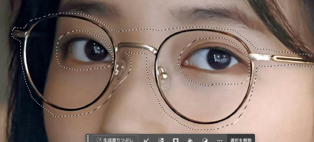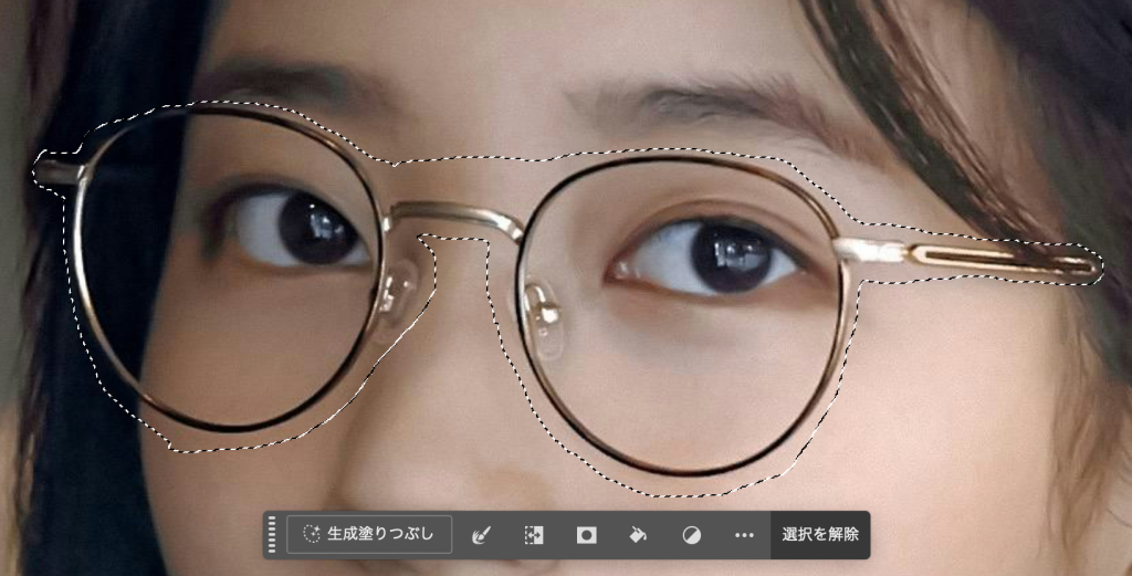 • 生成塗りつぶしと修復ブラシツールで短時間でメガネを消すことができた
