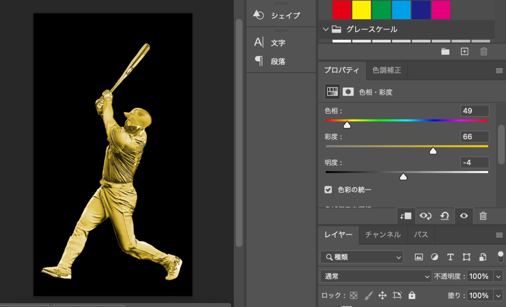 PS 金メッキ風の加工 Photoshop 2025.05.282025.06.01 目次 チュートリアル成果物 作業のながれ作成を終えた感想 チュートリアル https://youtube.com/shorts/m4q2NAd8U0E?si=SL77BnWUBuW-A8r9 成果物 作業のながれ 背景を削除 色相サイドでモノクロ レイヤーを複製して色調反転(cmd+i) 描画モードを差の絶対値 レイヤーを結合 色相・彩度で色相の統一にチェックをいれ色味を入れる より金属感を高めたい場合は色をつける前に同じ作業を繰り返す 繰り返しすぎるとディティールが失われる 作成を終えた感想 結構面白い。cmd + iで階調の反転 描画モードで差の絶対値は初めて使った
