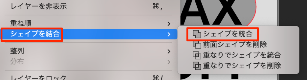 - レイヤーメニューにシェイプを結合がある