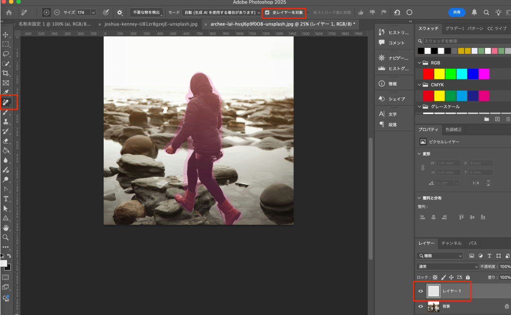 - 選択ブラシツール (不透明度30)で選択範囲を作成する