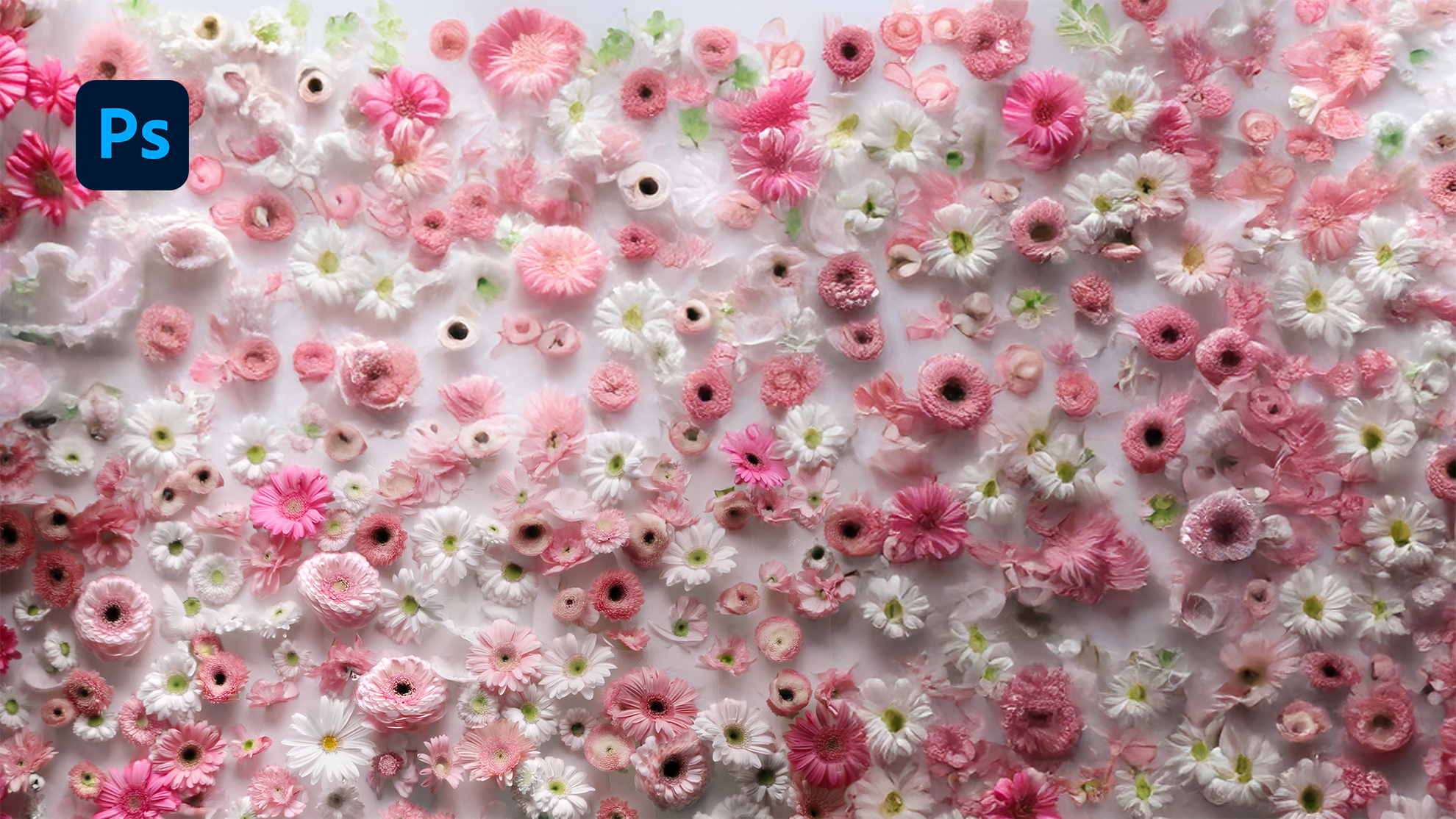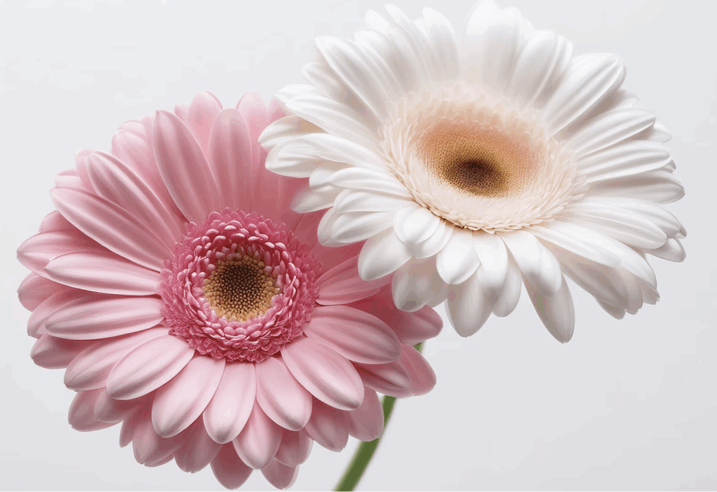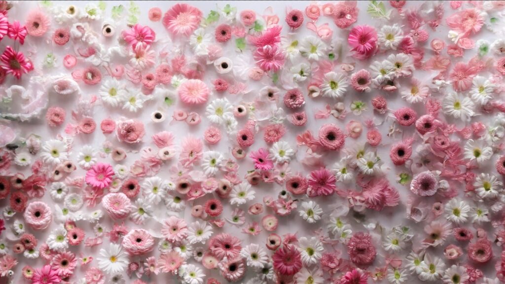 ピンクと白のガーベラがぎっしりと並んだ壁
