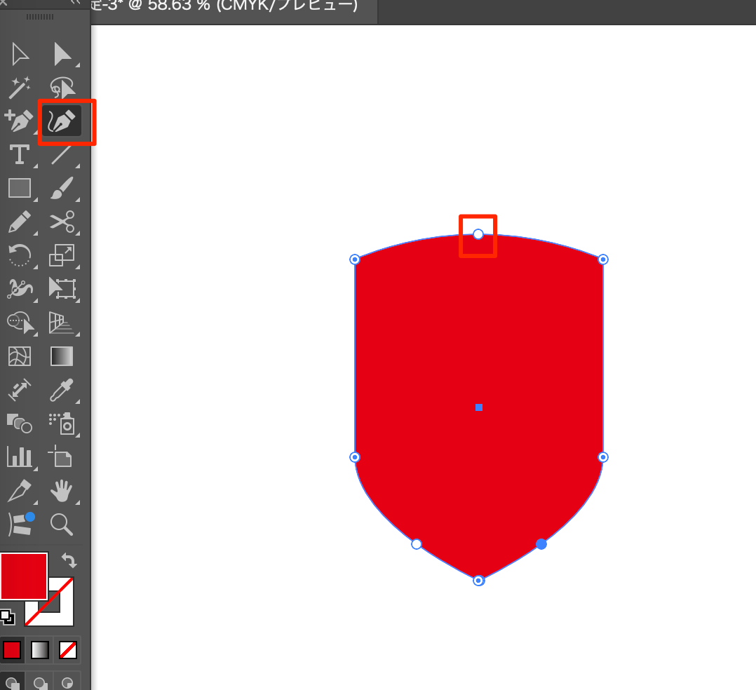 - 曲線ツールを使って上辺真ん中部分を掴み持ち上げる