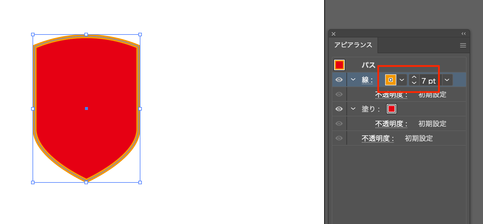 - アピアランスパネルを開いて線を設定する