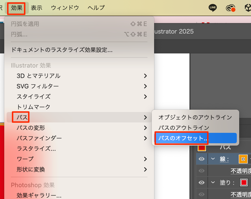 - 効果 -> パス -> パスのオフセット