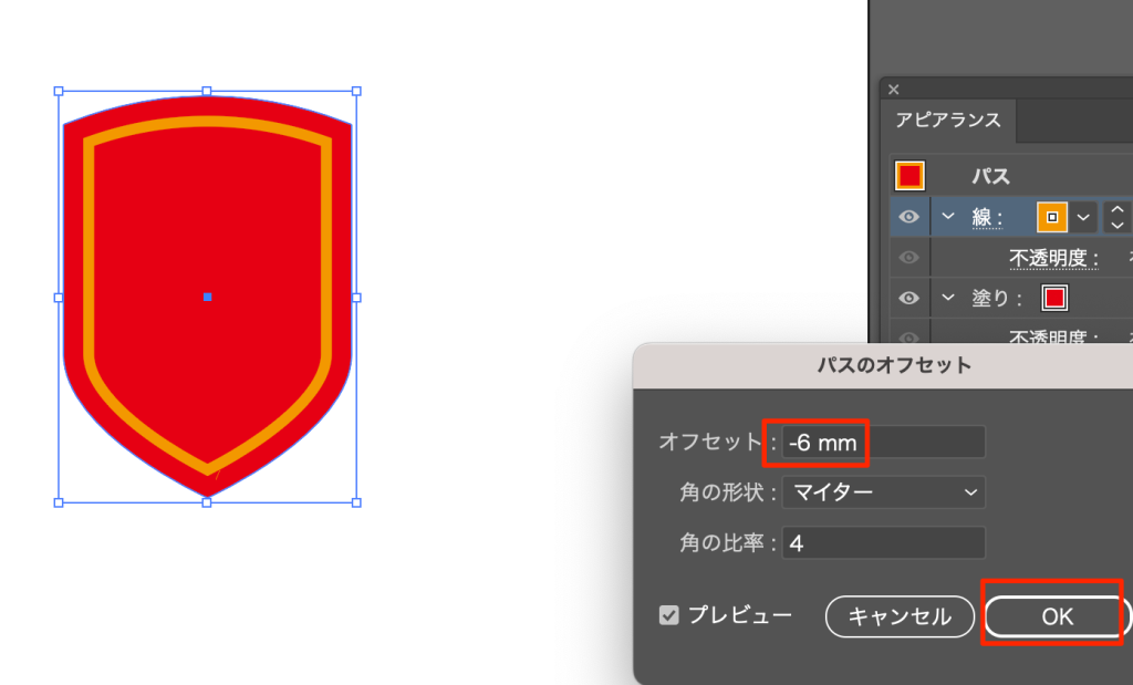 - オフセットをマイナスにすることで内側に同じ形のパスが描かれる
