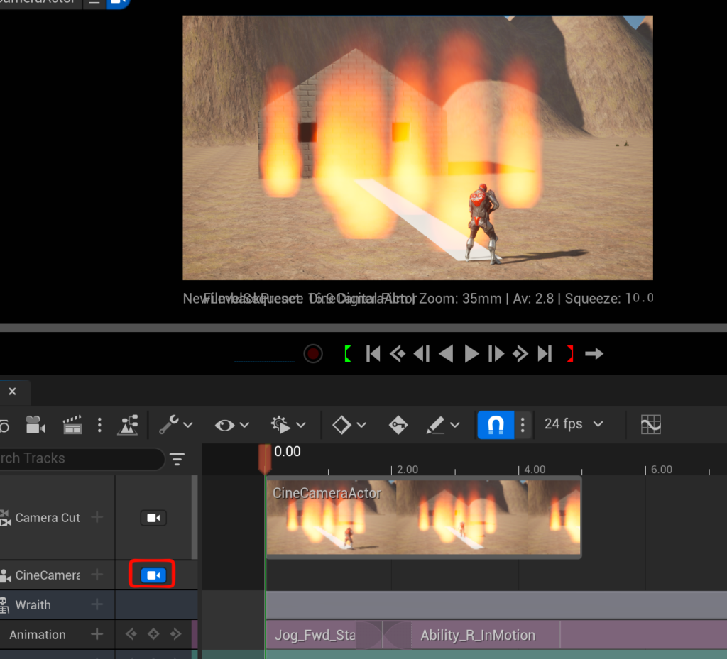 - cineCameraActorをシーケンスに配置