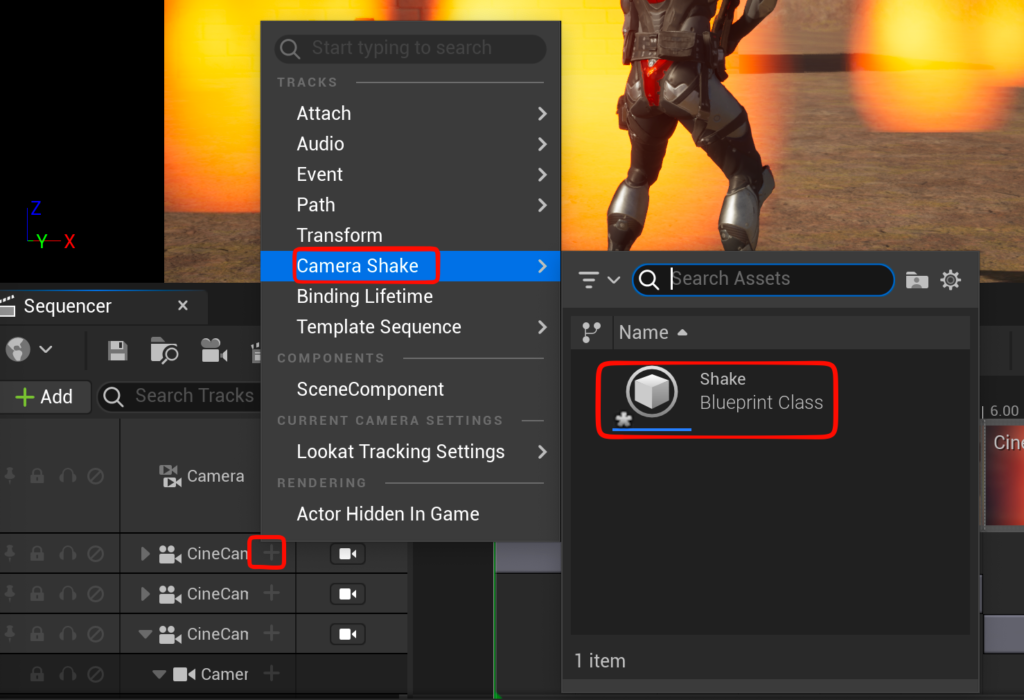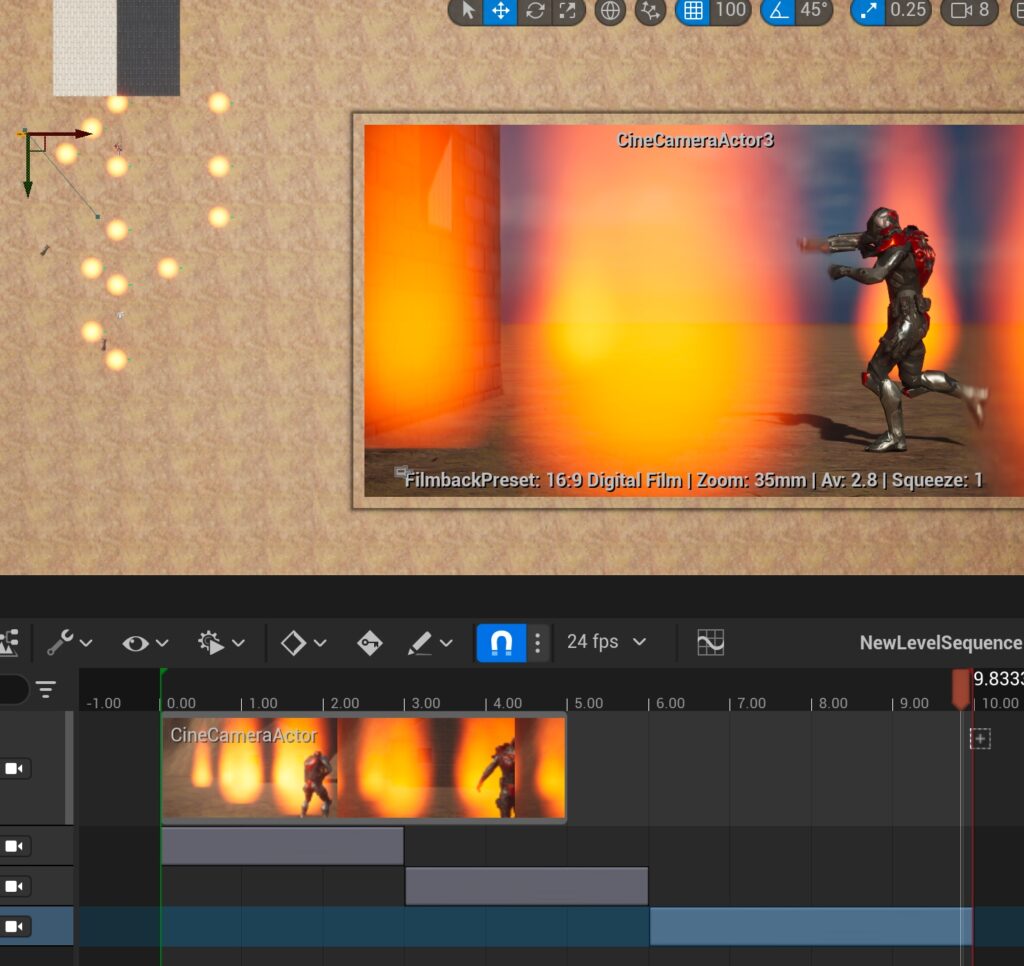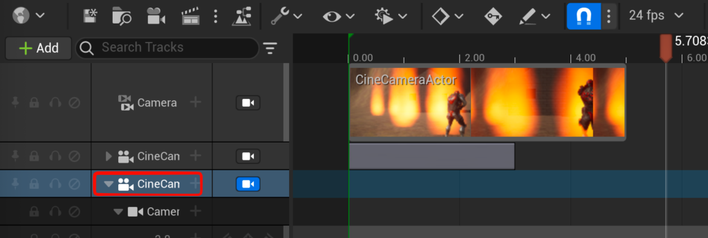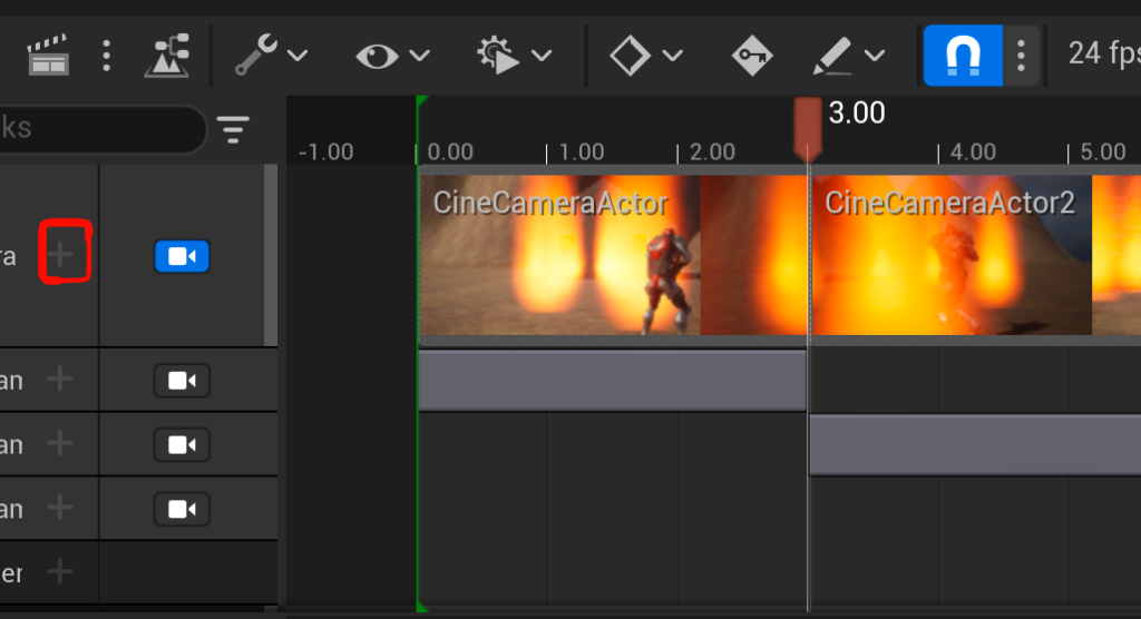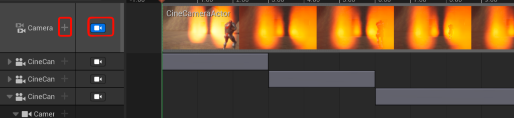 - ヒエラルキーでcinecameraを複製してタイムラインに配置