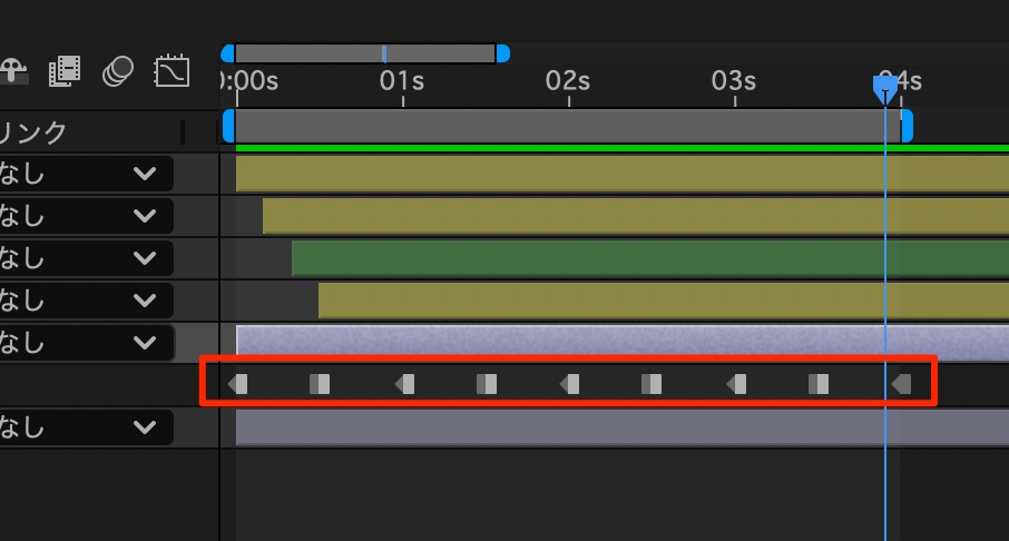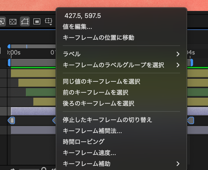 - インジケーターをshiftドラッグで既存のキーフレームに合わせて移動
