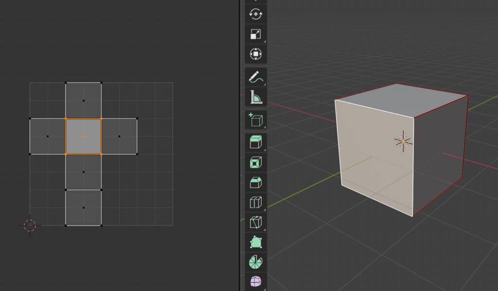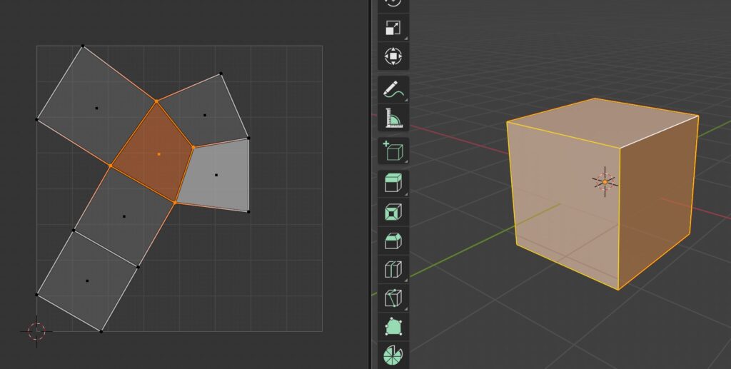 - スマートUV -> 自動で展開(シンプルな形には便利だが、複雑な形には向かない)