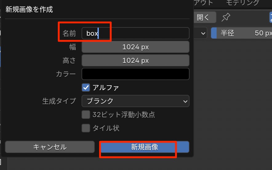 - 新規を押して > 新規画像