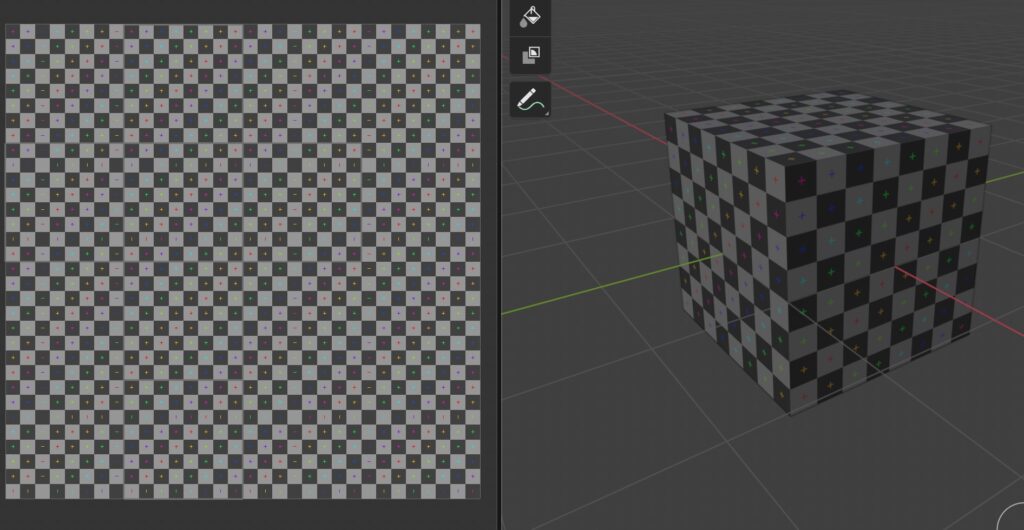 - UV展開しただけではなにも起こらず、そこにテクスチャを設定していく