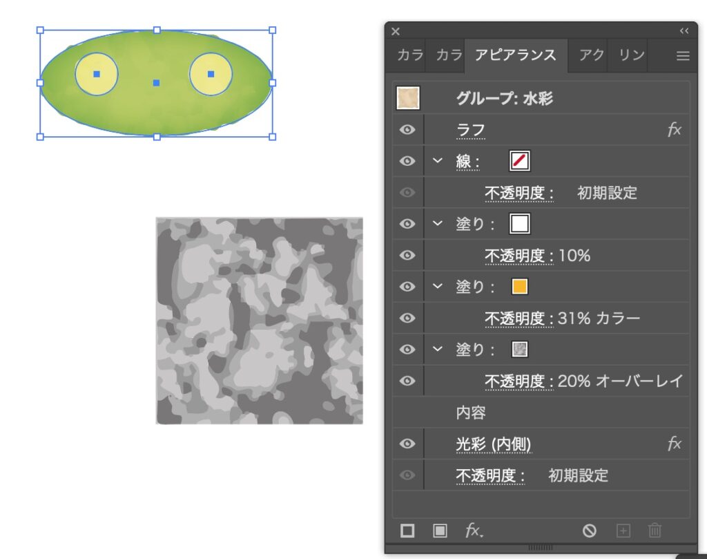 - 以下の内容でグラフィックスタイル(水彩)として登録